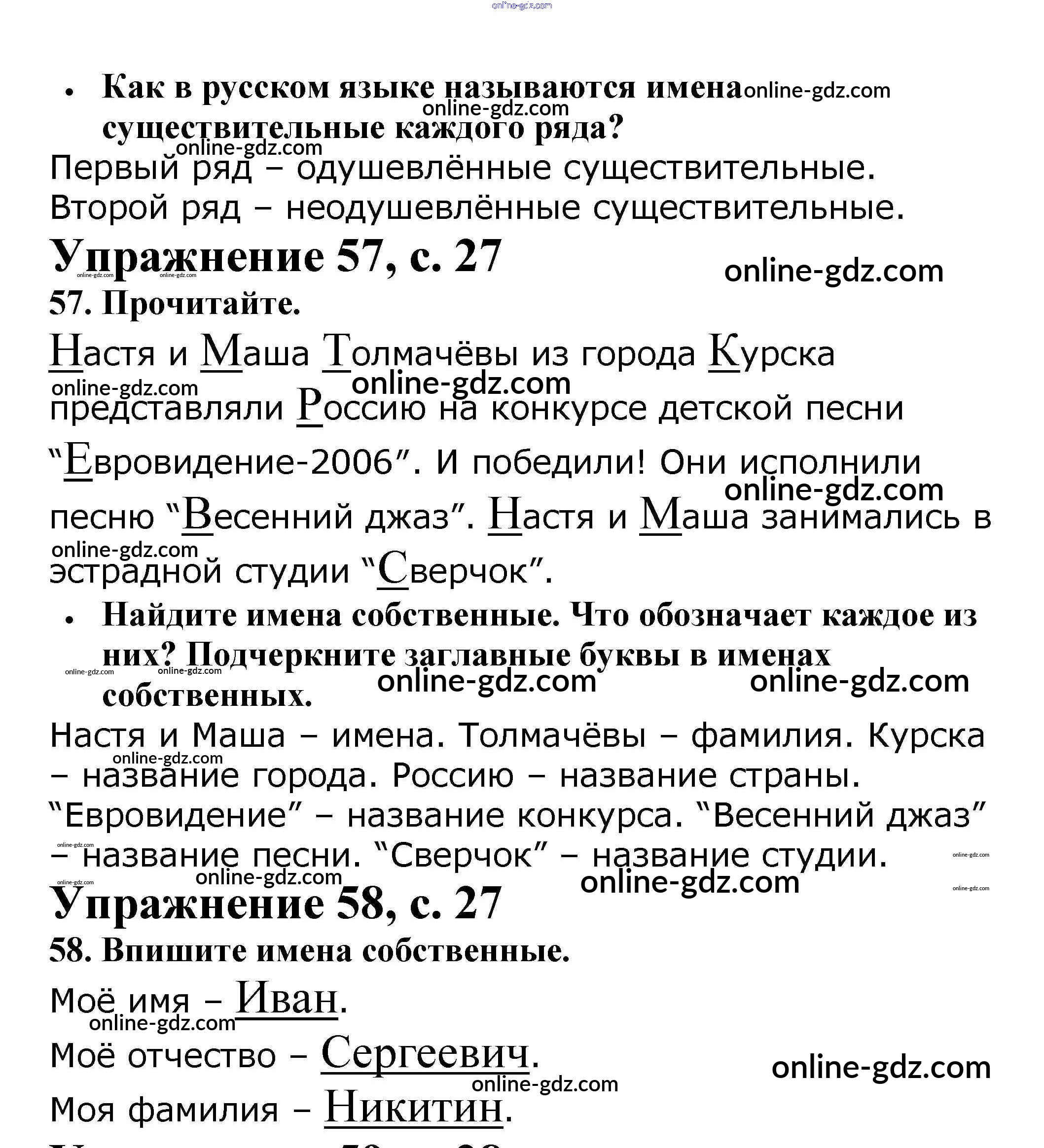 Готовые домашние задания по Русскому языку за 2 класс Рабочая тетрадь Канакина Школа России 2012 - Часть 2. Страницы 27