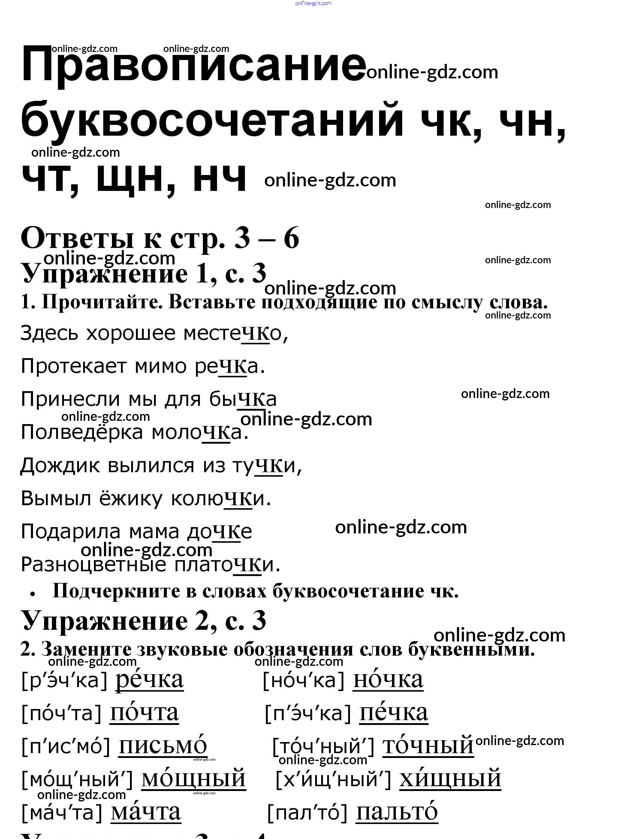 Готовые домашние задания по Русскому языку за 2 класс Рабочая тетрадь Канакина Школа России 2012 - Часть 2. Страницы 3