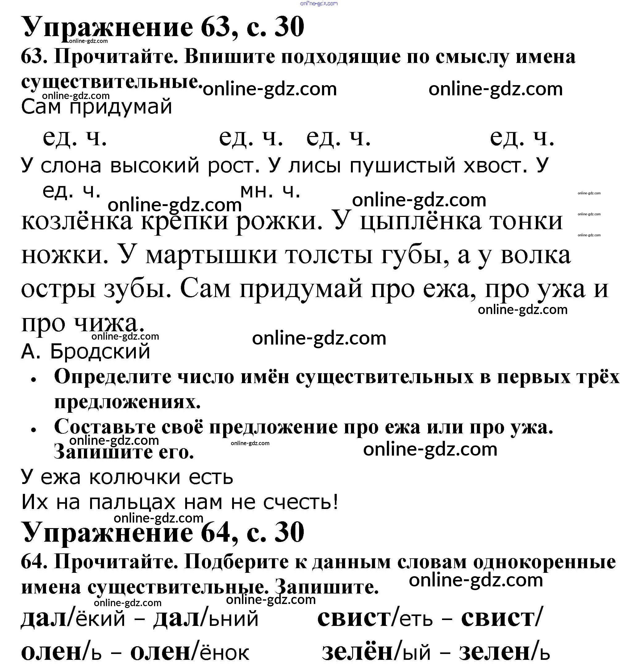 Готовые домашние задания по Русскому языку за 2 класс Рабочая тетрадь Канакина Школа России 2012 - Часть 2. Страницы 30