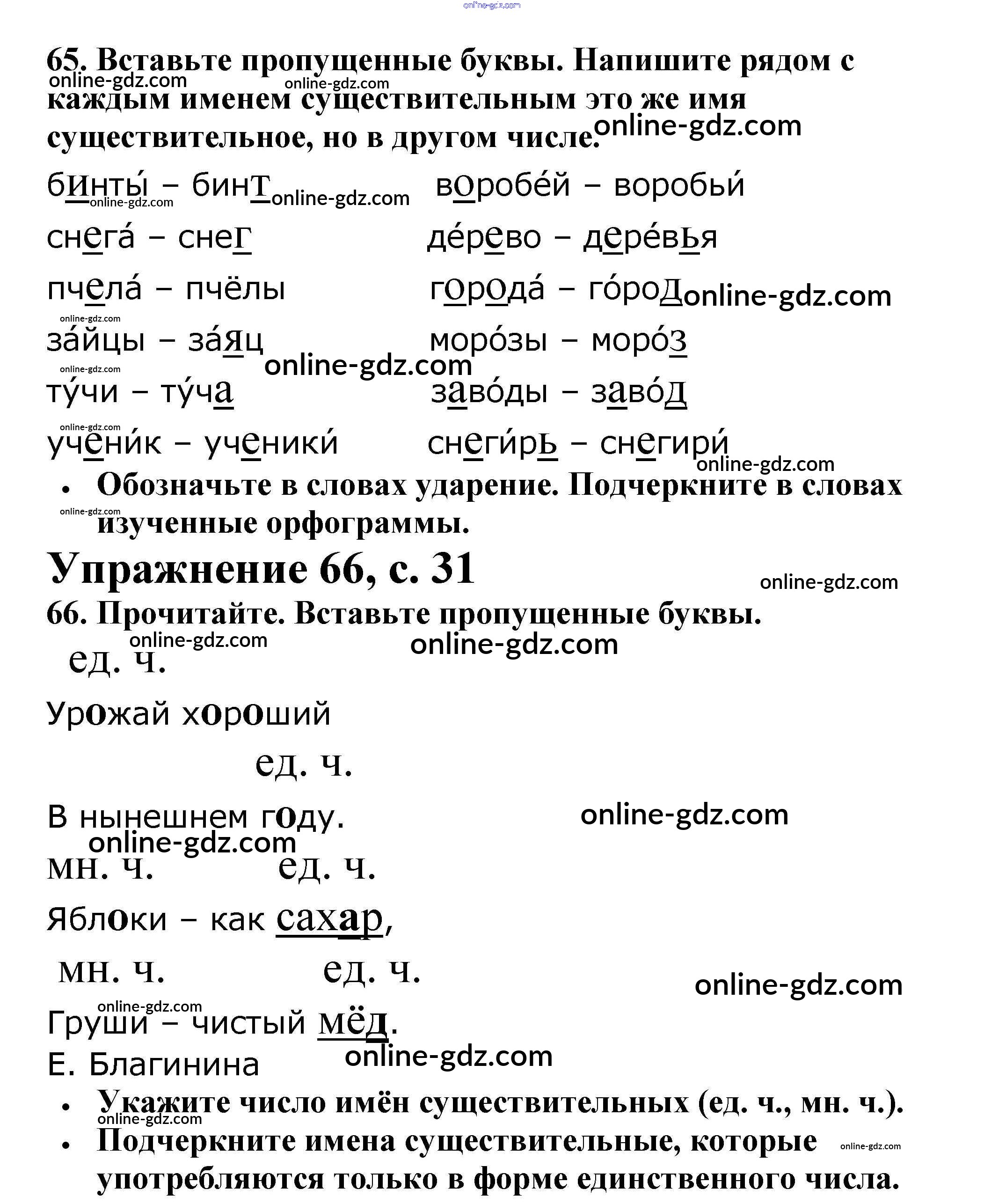 Готовые домашние задания по Русскому языку за 2 класс Рабочая тетрадь Канакина Школа России 2012 - Часть 2. Страницы 31