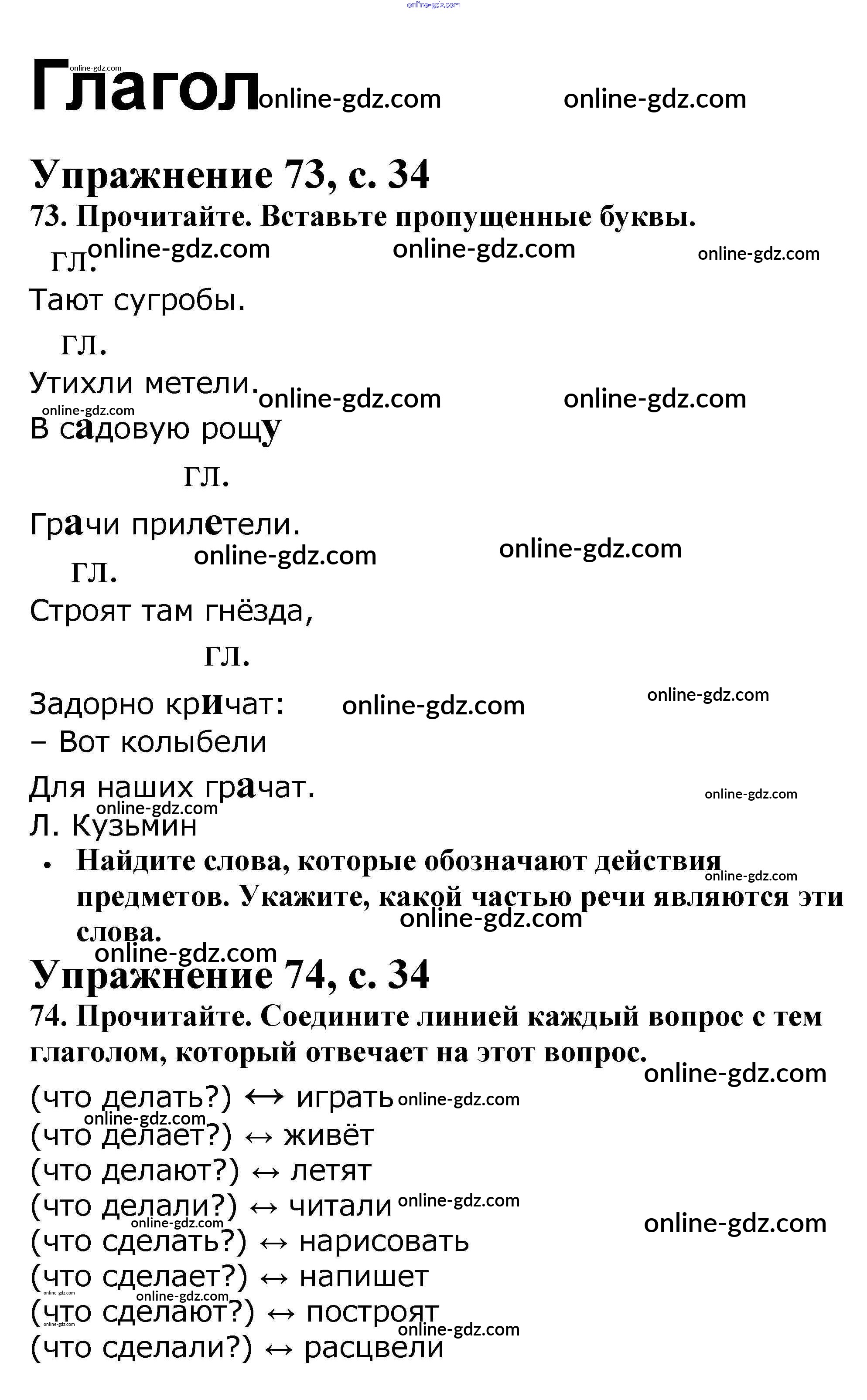 Готовые домашние задания по Русскому языку за 2 класс Рабочая тетрадь Канакина Школа России 2012 - Часть 2. Страницы 34