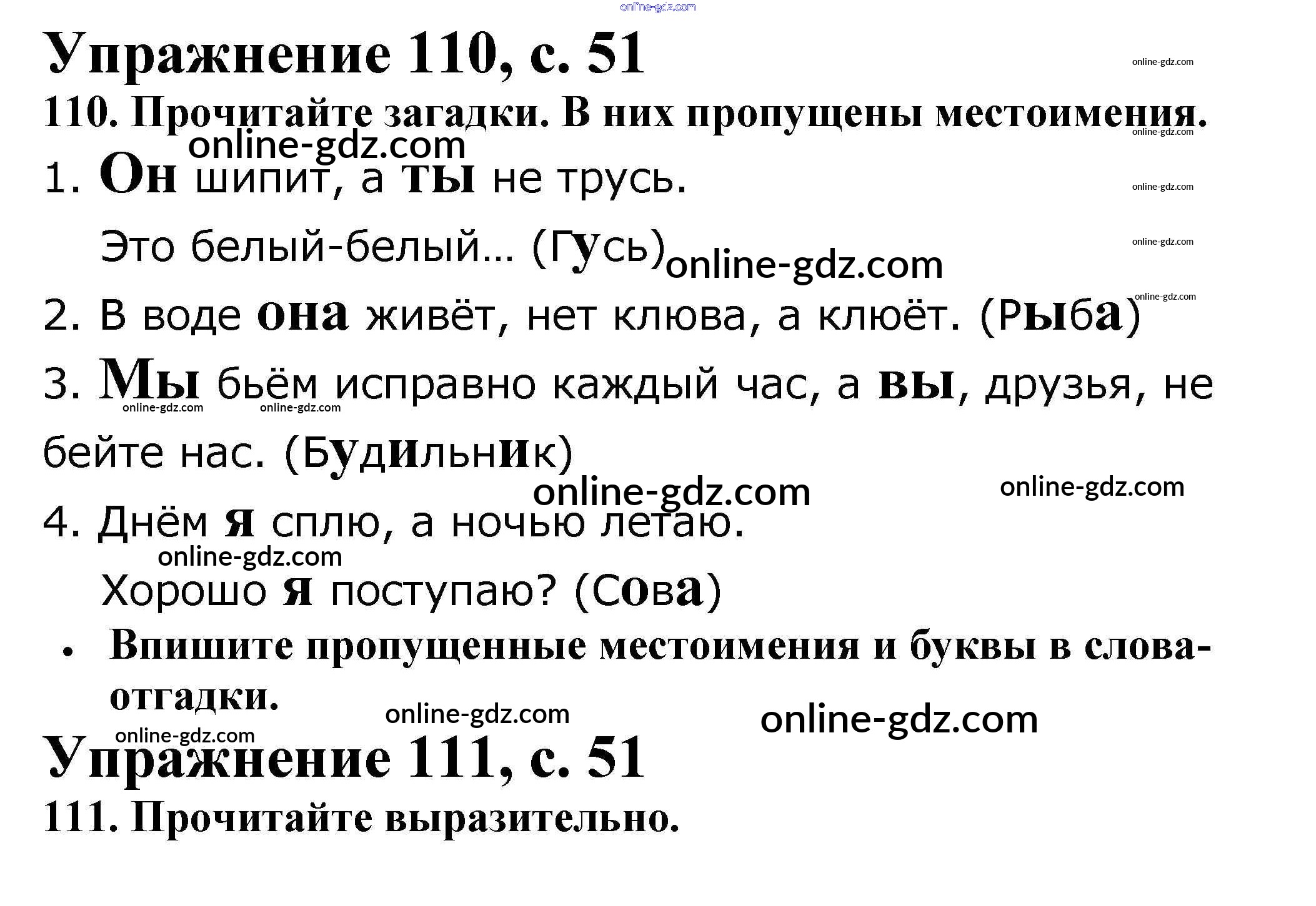 Готовые домашние задания по Русскому языку за 2 класс Рабочая тетрадь Канакина Школа России 2012 - Часть 2. Страницы 51