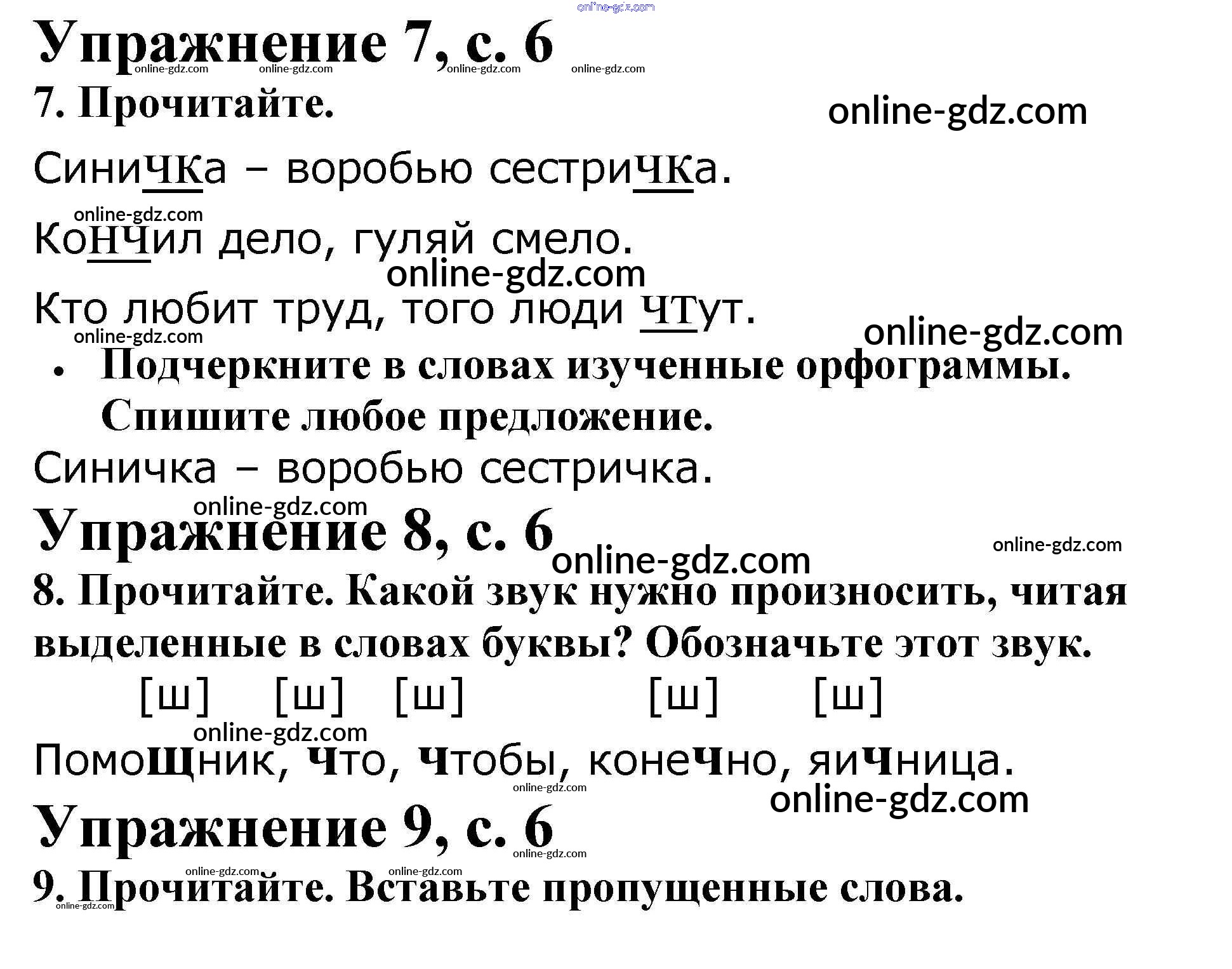 Готовые домашние задания по Русскому языку за 2 класс Рабочая тетрадь Канакина Школа России 2012 - Часть 2. Страницы 6