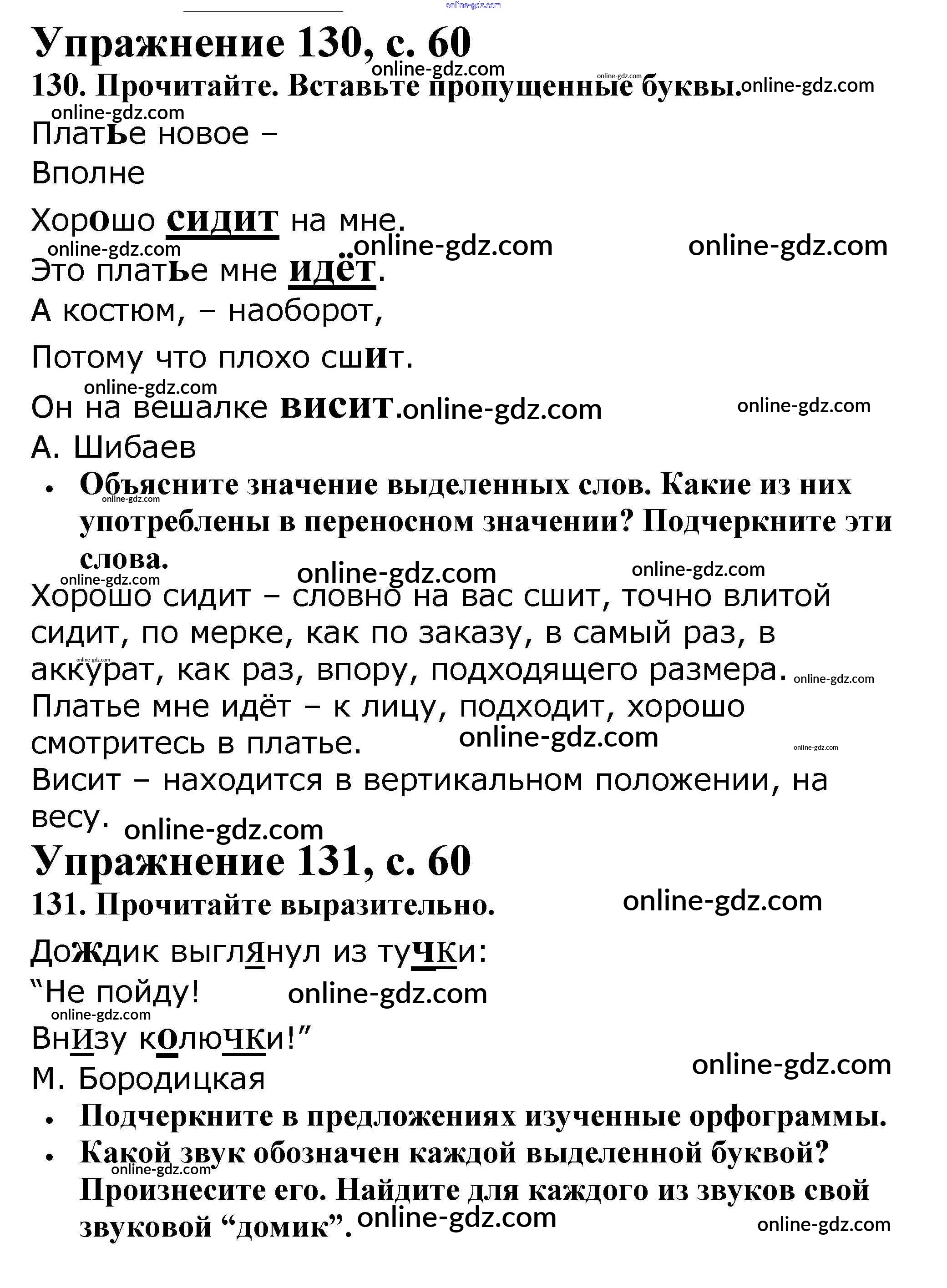 Готовые домашние задания по Русскому языку за 2 класс Рабочая тетрадь Канакина Школа России 2012 - Часть 2. Страницы 60