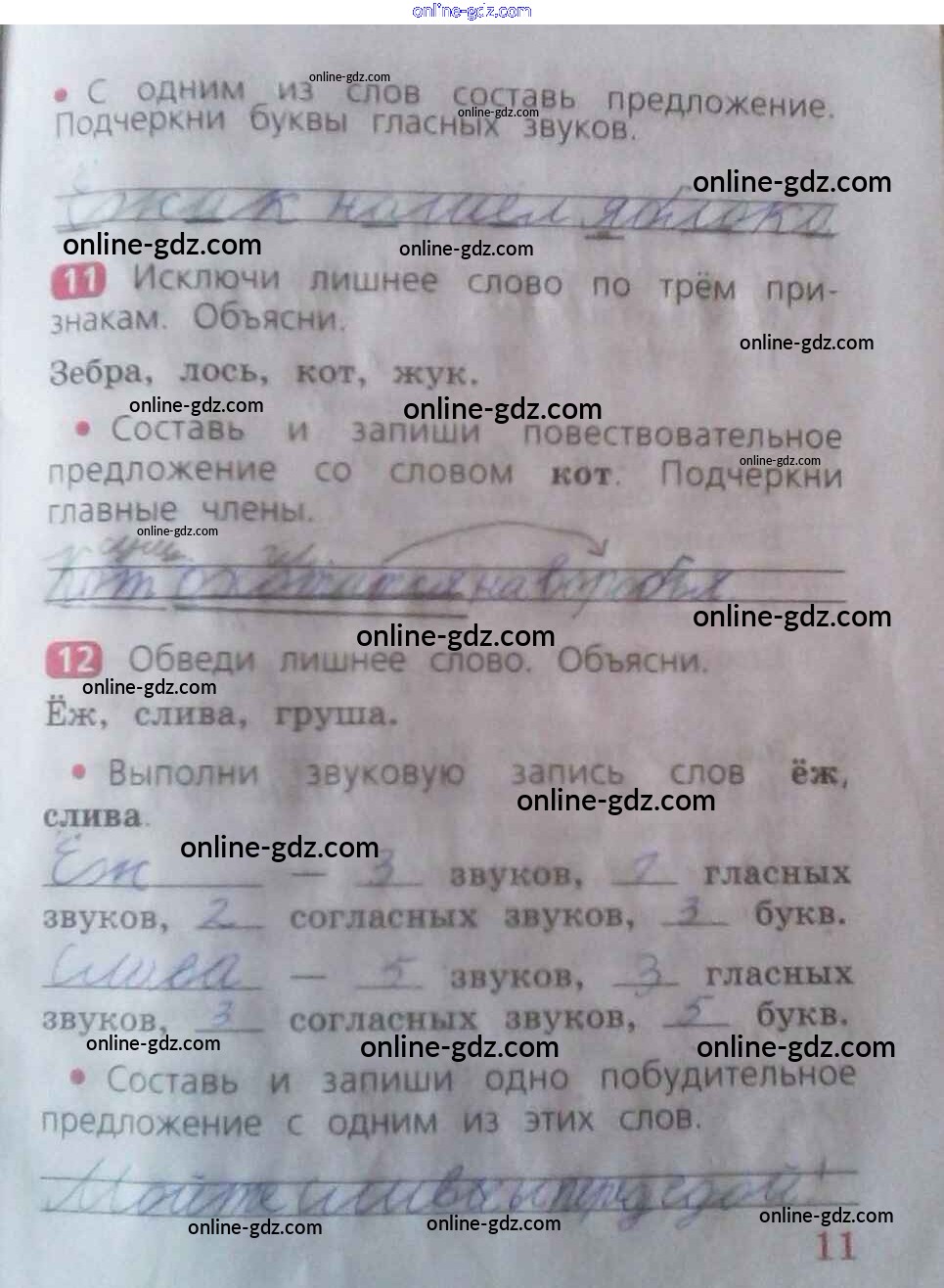 Готовые домашние задания по Русскому языку за 2 класс Рабочая тетрадь Песняева, Анащенкова 2020 - Часть 1. Страницы тетради 11