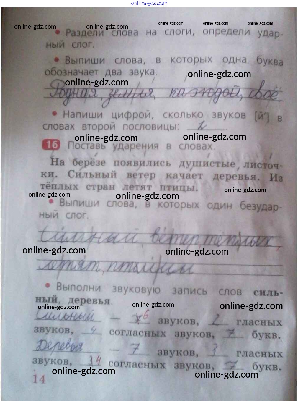Готовые домашние задания по Русскому языку за 2 класс Рабочая тетрадь Песняева, Анащенкова 2020 - Часть 1. Страницы тетради 14