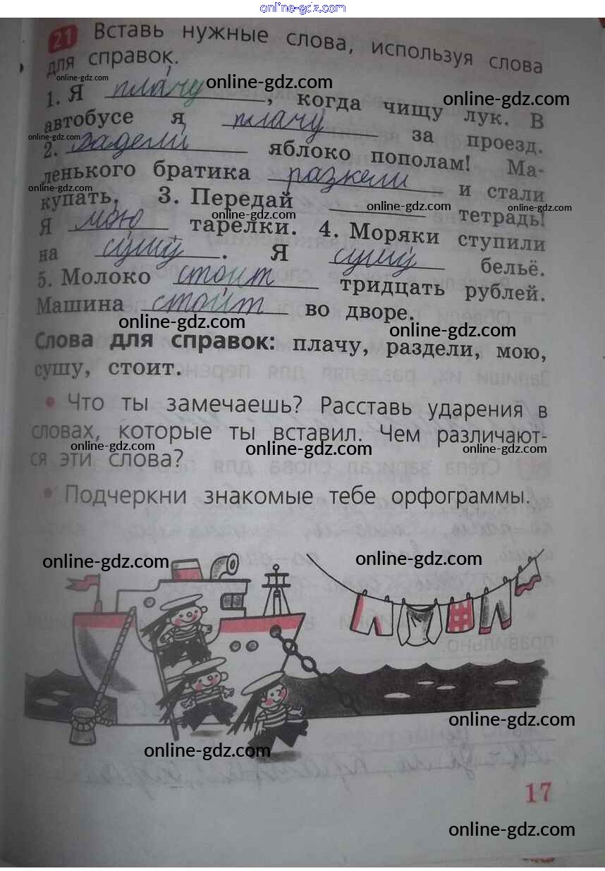 Готовые домашние задания по Русскому языку за 2 класс Рабочая тетрадь Песняева, Анащенкова 2020 - Часть 1. Страницы тетради 17