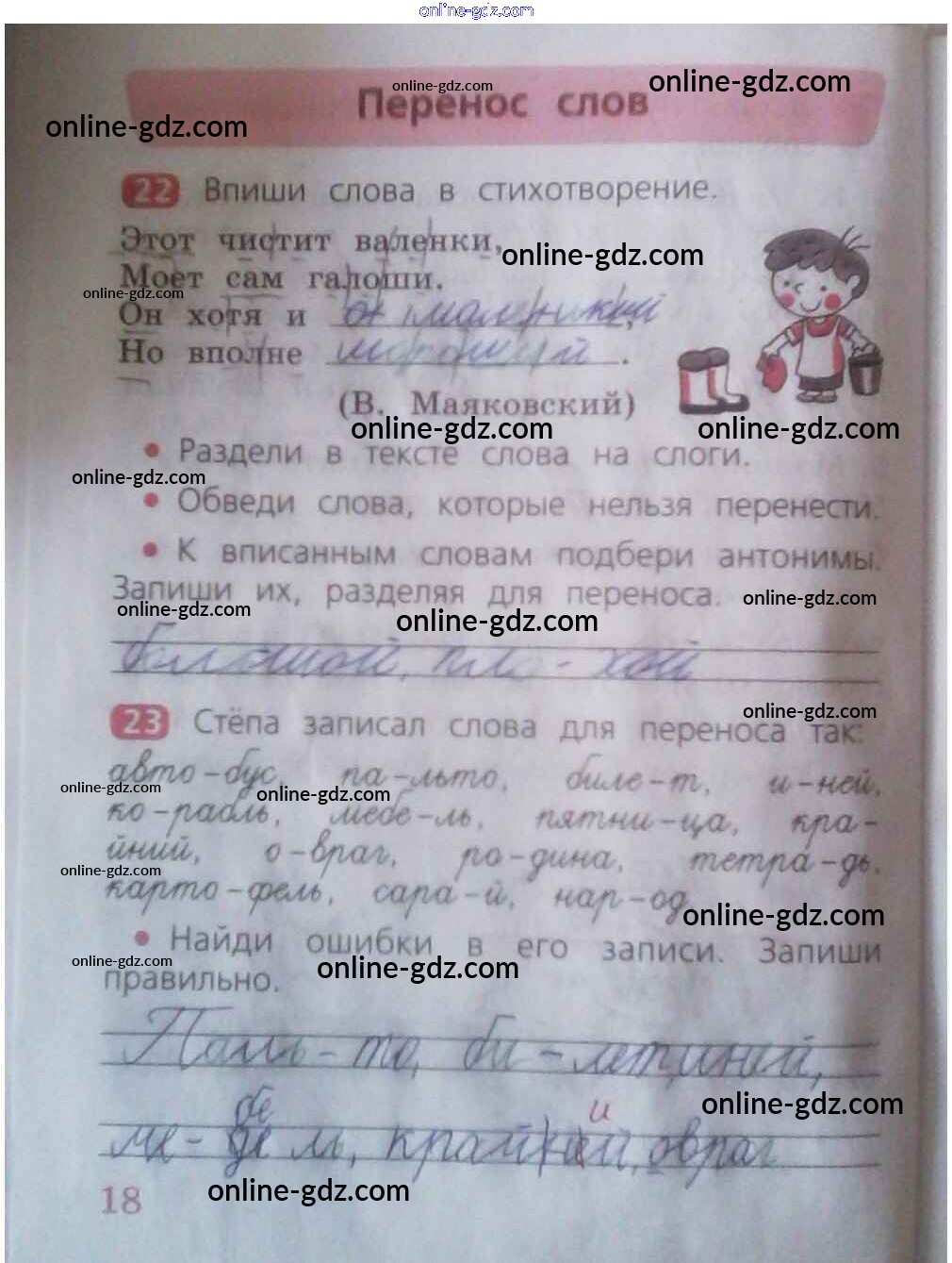 Готовые домашние задания по Русскому языку за 2 класс Рабочая тетрадь Песняева, Анащенкова 2020 - Часть 1. Страницы тетради 18