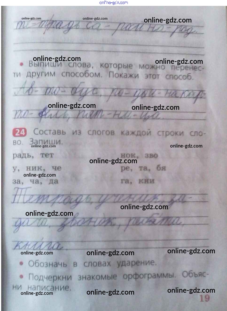 Готовые домашние задания по Русскому языку за 2 класс Рабочая тетрадь Песняева, Анащенкова 2020 - Часть 1. Страницы тетради 19