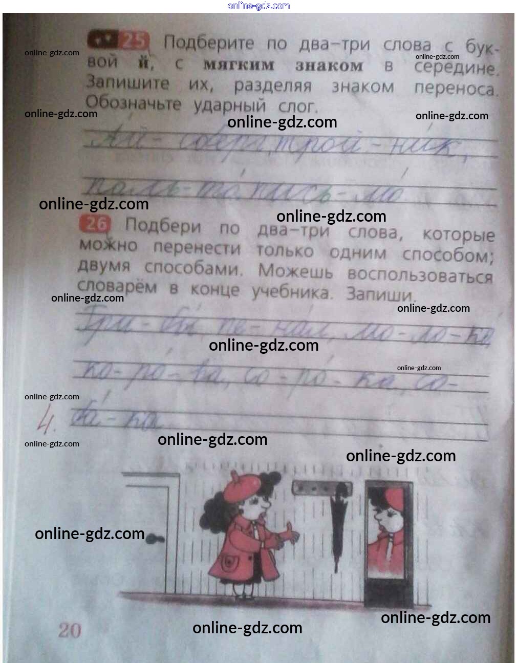 Готовые домашние задания по Русскому языку за 2 класс Рабочая тетрадь Песняева, Анащенкова 2020 - Часть 1. Страницы тетради 20