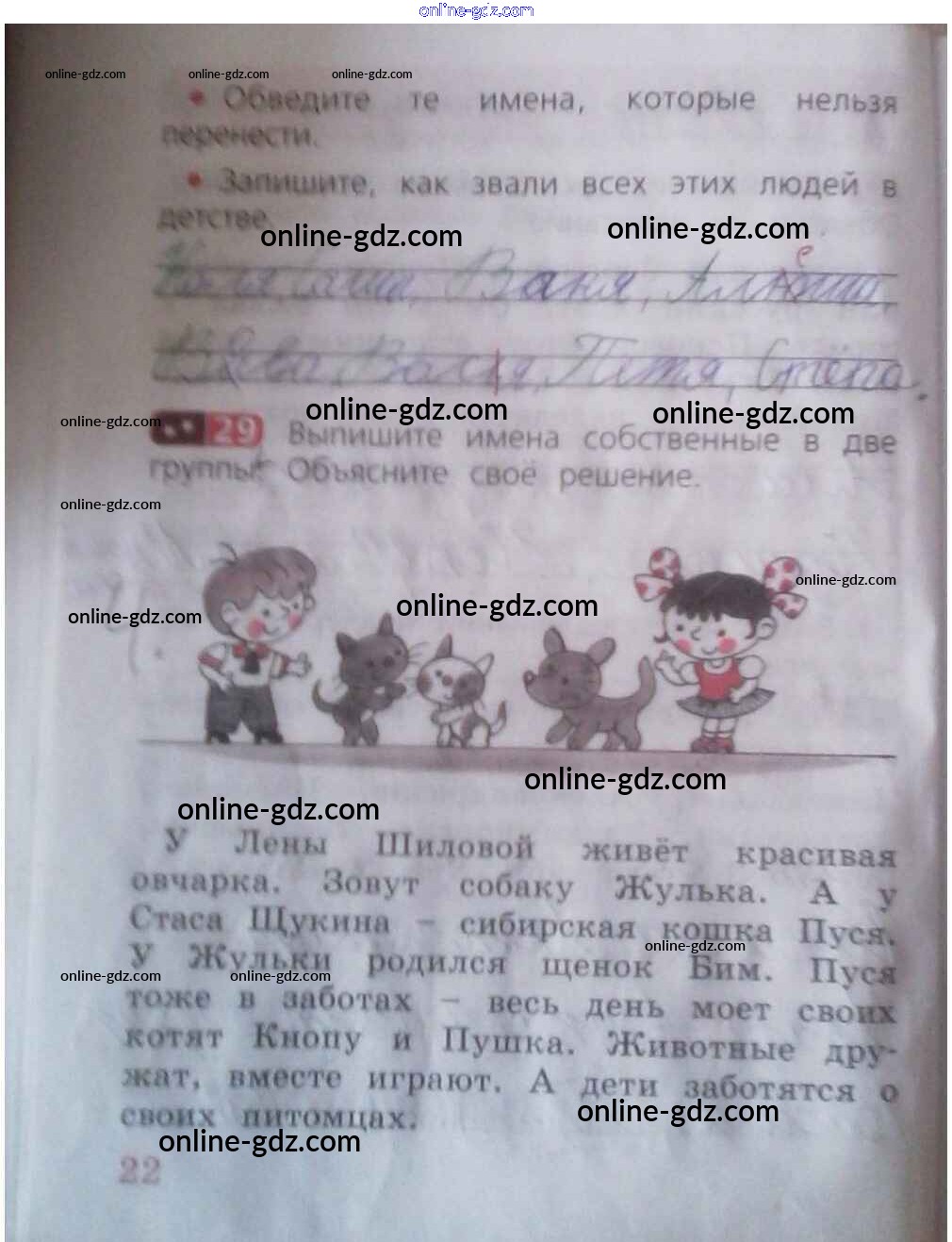 Готовые домашние задания по Русскому языку за 2 класс Рабочая тетрадь Песняева, Анащенкова 2020 - Часть 1. Страницы тетради 22