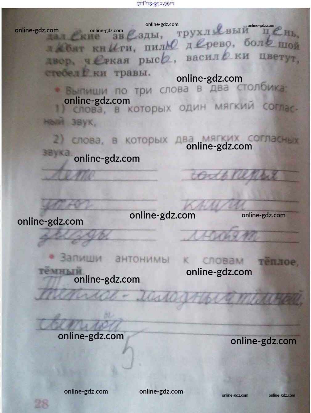 Готовые домашние задания по Русскому языку за 2 класс Рабочая тетрадь Песняева, Анащенкова 2020 - Часть 1. Страницы тетради 28