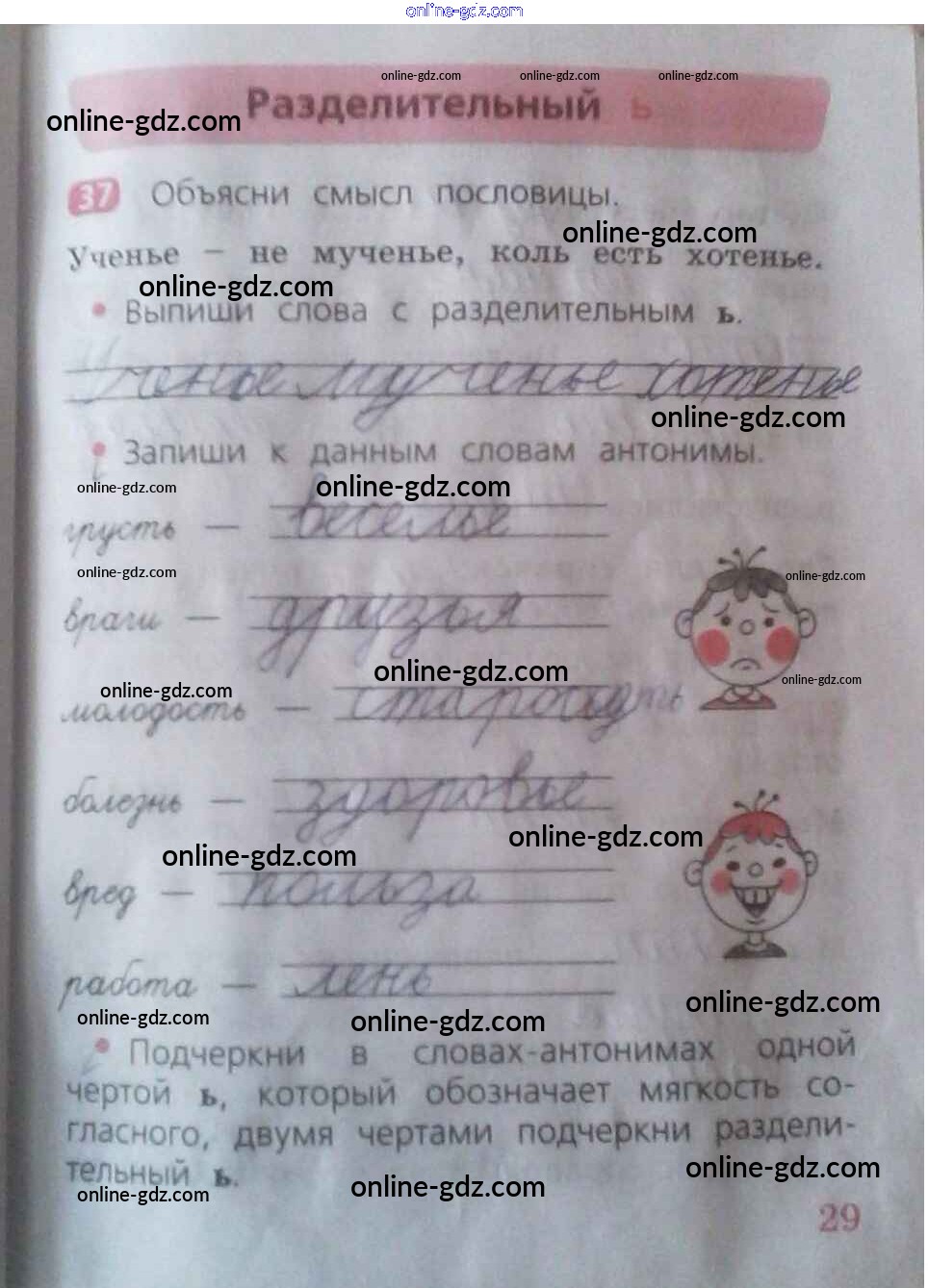 Готовые домашние задания по Русскому языку за 2 класс Рабочая тетрадь Песняева, Анащенкова 2020 - Часть 1. Страницы тетради 29