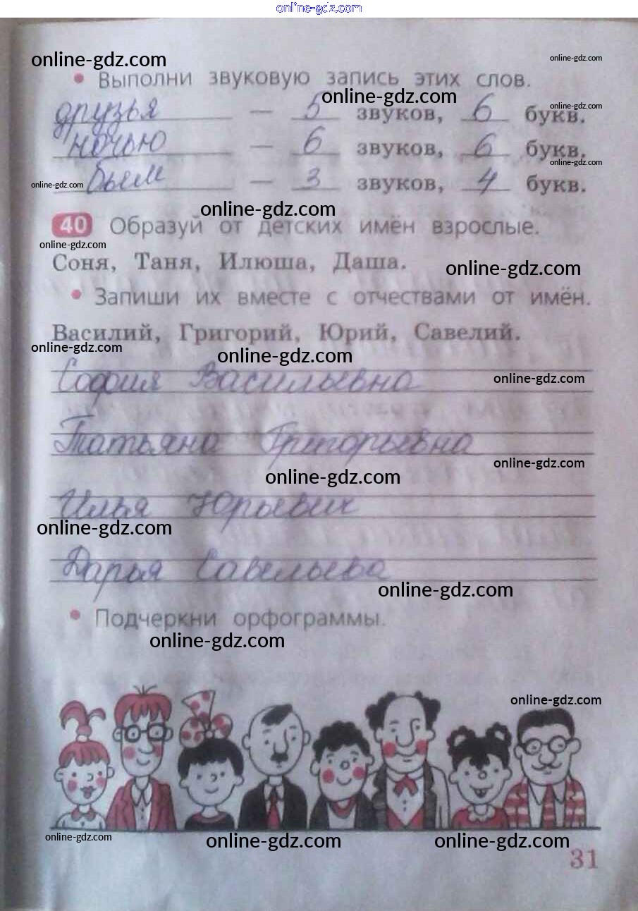 Готовые домашние задания по Русскому языку за 2 класс Рабочая тетрадь Песняева, Анащенкова 2020 - Часть 1. Страницы тетради 31