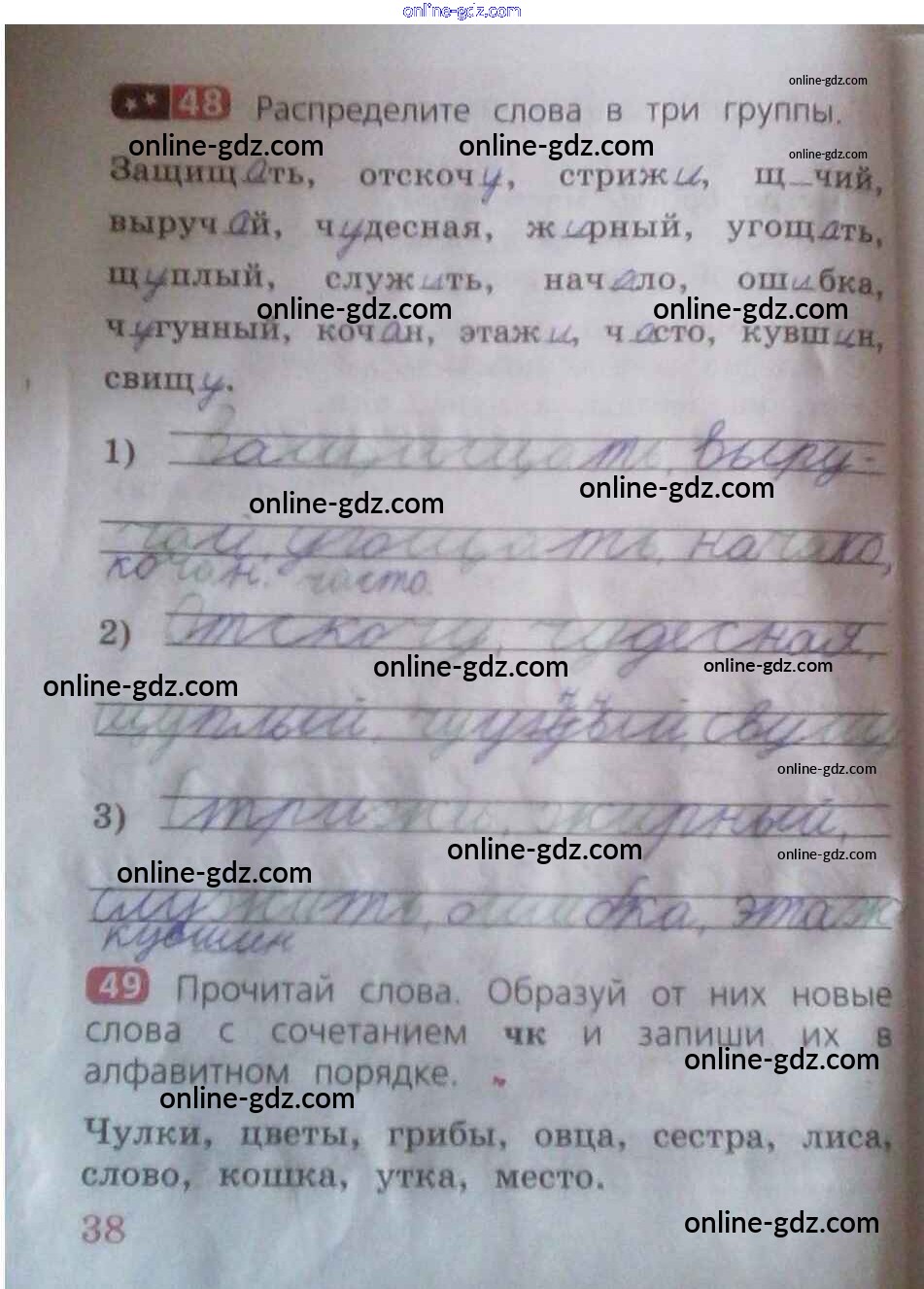 Готовые домашние задания по Русскому языку за 2 класс Рабочая тетрадь Песняева, Анащенкова 2020 - Часть 1. Страницы тетради 38