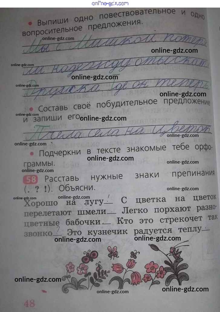 Готовые домашние задания по Русскому языку за 2 класс Рабочая тетрадь Песняева, Анащенкова 2020 - Часть 1. Страницы тетради 48
