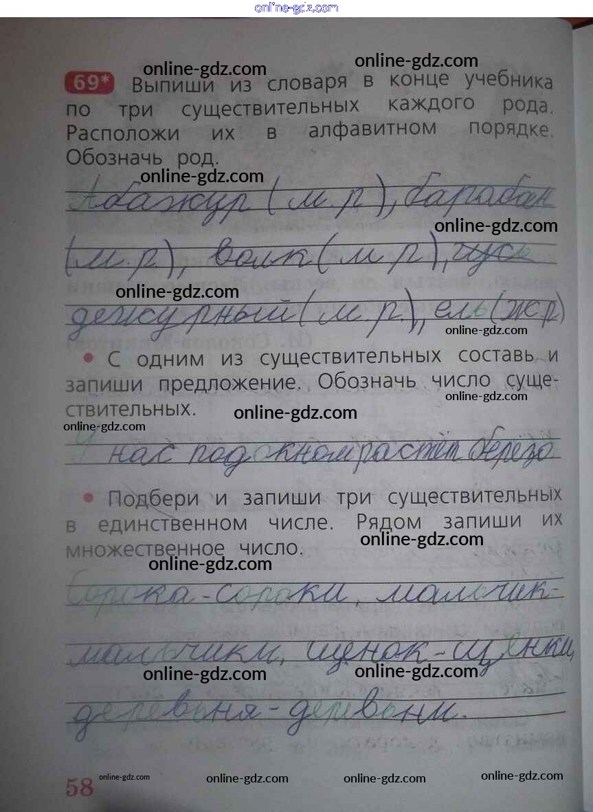 Готовые домашние задания по Русскому языку за 2 класс Рабочая тетрадь Песняева, Анащенкова 2020 - Часть 1. Страницы тетради 58