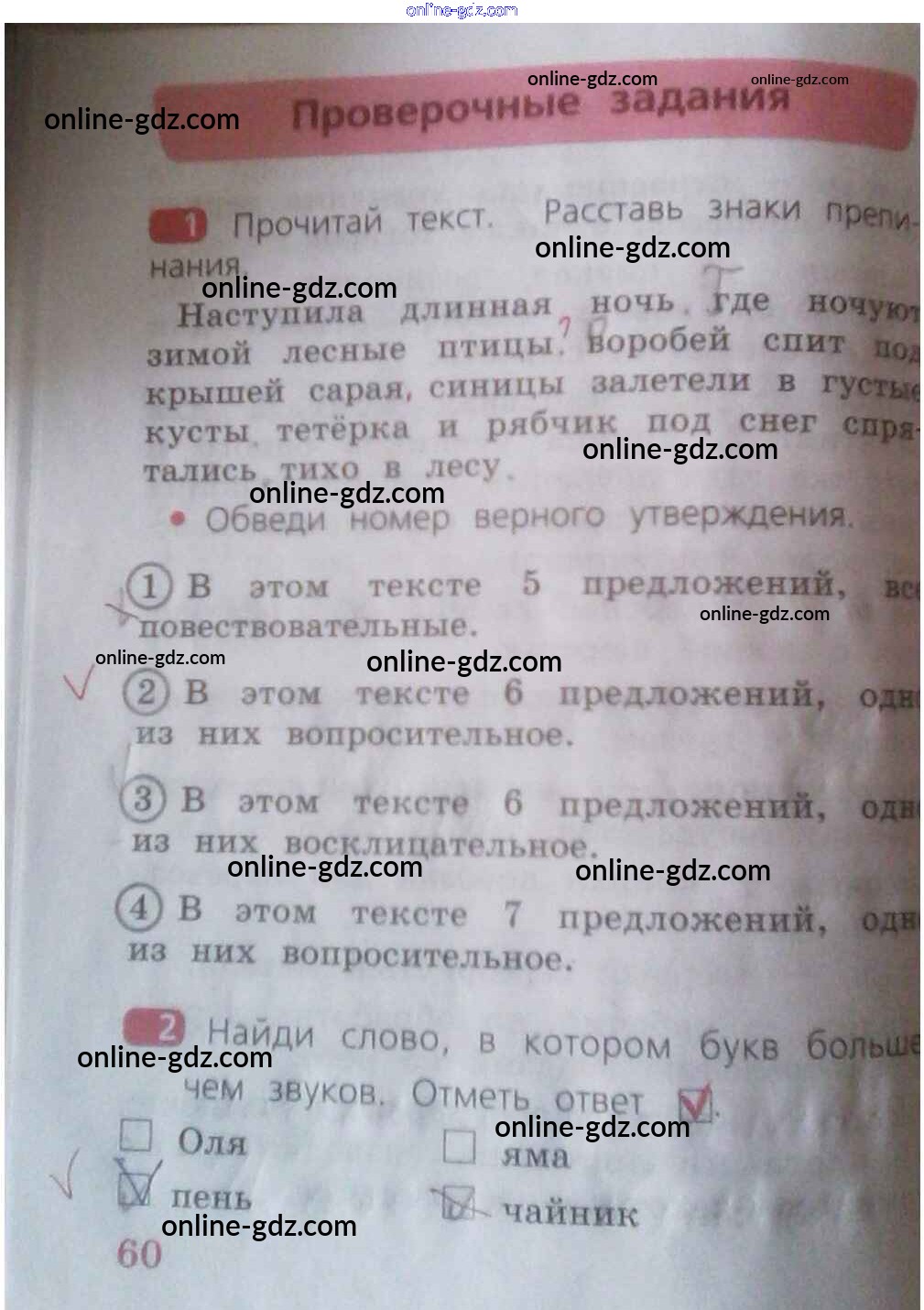 Готовые домашние задания по Русскому языку за 2 класс Рабочая тетрадь Песняева, Анащенкова 2020 - Часть 1. Страницы тетради 60