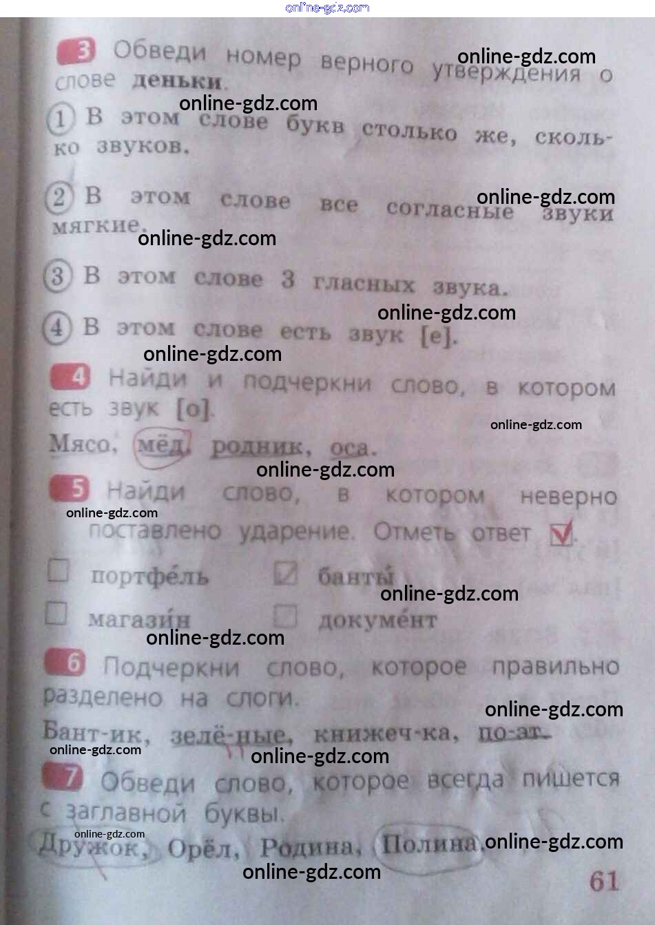 Готовые домашние задания по Русскому языку за 2 класс Рабочая тетрадь Песняева, Анащенкова 2020 - Часть 1. Страницы тетради 61