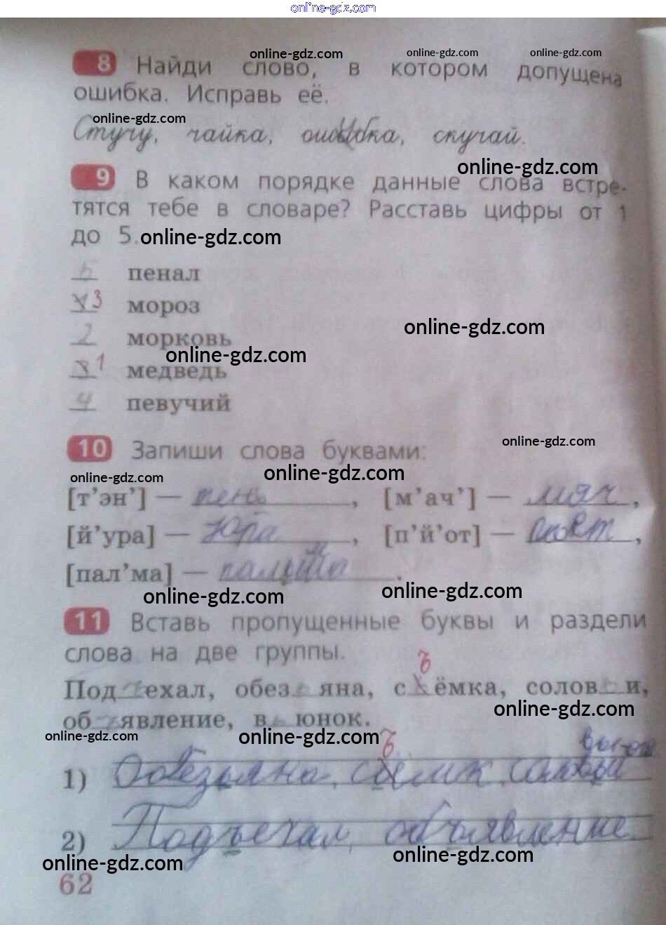 Готовые домашние задания по Русскому языку за 2 класс Рабочая тетрадь Песняева, Анащенкова 2020 - Часть 1. Страницы тетради 62