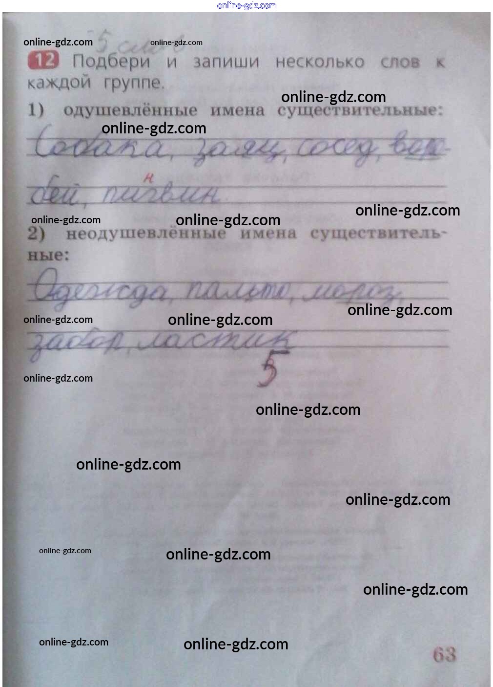 Готовые домашние задания по Русскому языку за 2 класс Рабочая тетрадь Песняева, Анащенкова 2020 - Часть 1. Страницы тетради 63