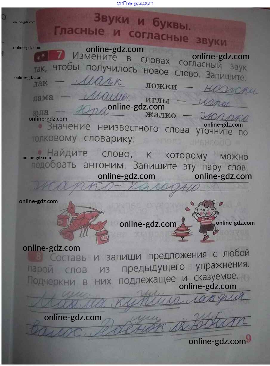 Готовые домашние задания по Русскому языку за 2 класс Рабочая тетрадь Песняева, Анащенкова 2020 - Часть 1. Страницы тетради 9