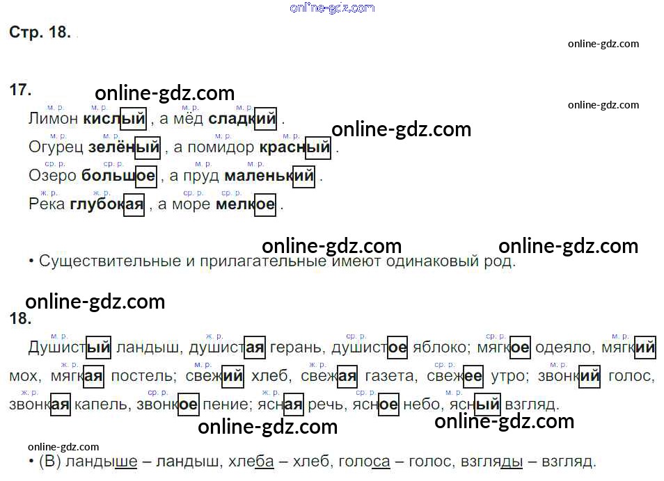 Готовые домашние задания по Русскому языку за 2 класс Рабочая тетрадь Песняева, Анащенкова 2020 - Часть 2. Страницы тетради 18
