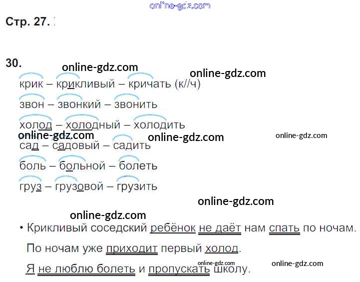 Готовые домашние задания по Русскому языку за 2 класс Рабочая тетрадь Песняева, Анащенкова 2020 - Часть 2. Страницы тетради 27