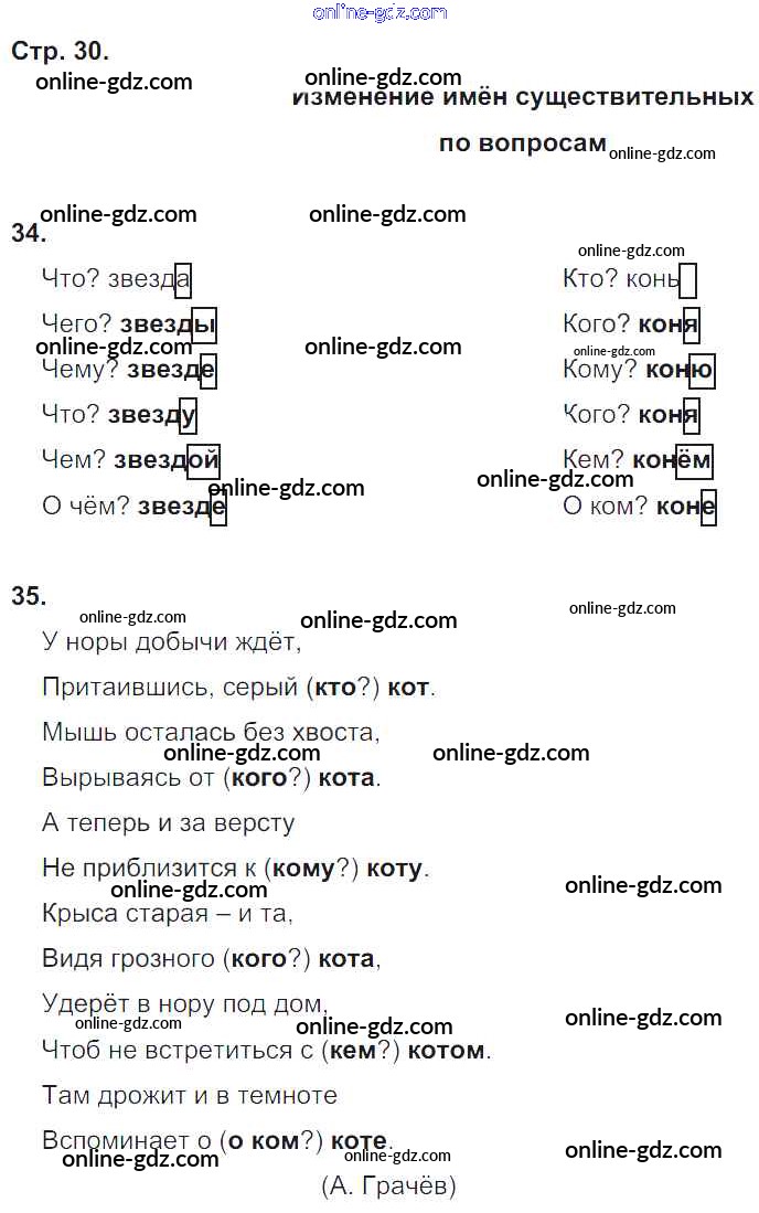 Готовые домашние задания по Русскому языку за 2 класс Рабочая тетрадь Песняева, Анащенкова 2020 - Часть 2. Страницы тетради 30