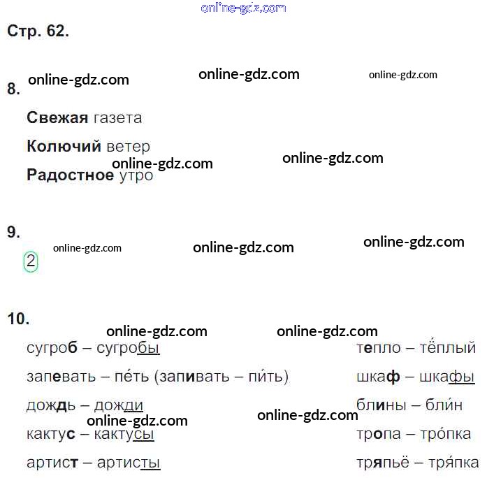 Готовые домашние задания по Русскому языку за 2 класс Рабочая тетрадь Песняева, Анащенкова 2020 - Часть 2. Страницы тетради 62