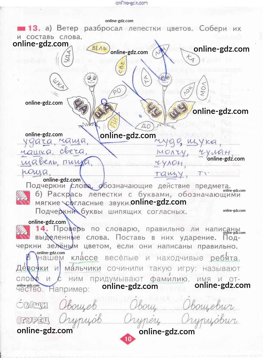 Готовые домашние задания по Русскому языку за 2 класс Рабочая тетрадь Яковлева 2015 - Часть 1. Страницы 10