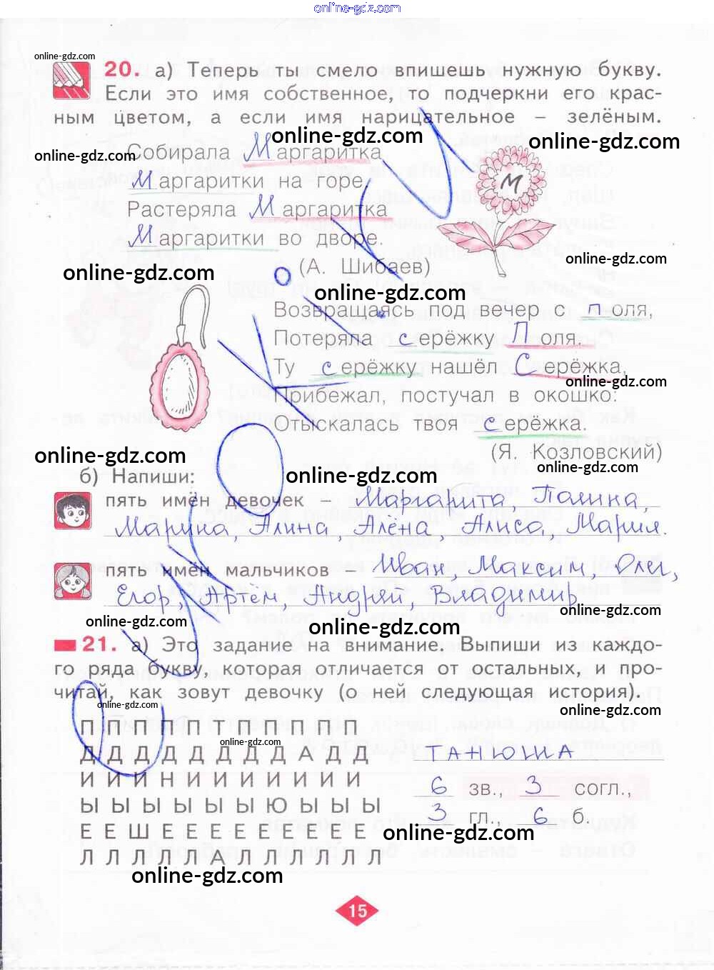 Готовые домашние задания по Русскому языку за 2 класс Рабочая тетрадь Яковлева 2015 - Часть 1. Страницы 15