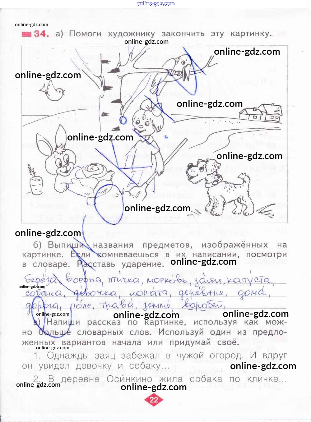 Готовые домашние задания по Русскому языку за 2 класс Рабочая тетрадь Яковлева 2015 - Часть 1. Страницы 22