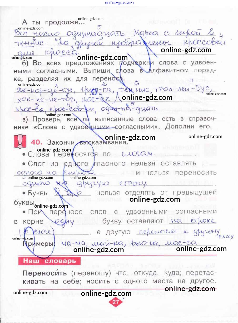 Готовые домашние задания по Русскому языку за 2 класс Рабочая тетрадь Яковлева 2015 - Часть 1. Страницы 27