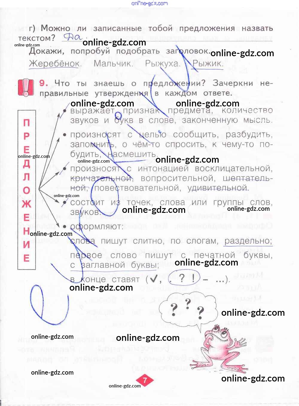 Готовые домашние задания по Русскому языку за 2 класс Рабочая тетрадь Яковлева 2015 - Часть 1. Страницы 7