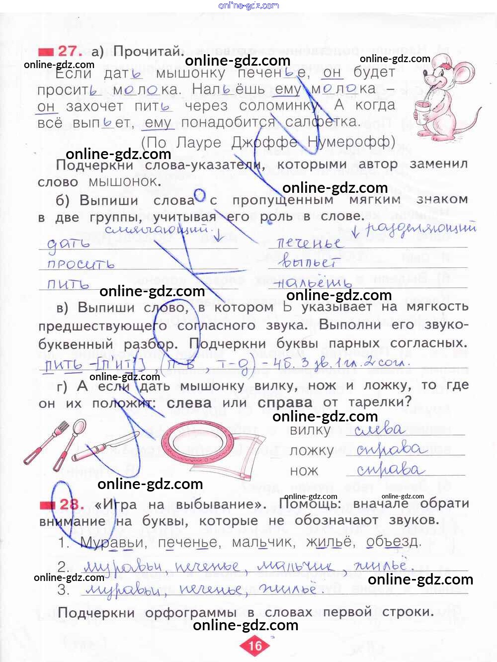Готовые домашние задания по Русскому языку за 2 класс Рабочая тетрадь Яковлева 2015 - Часть 2. Страницы 16