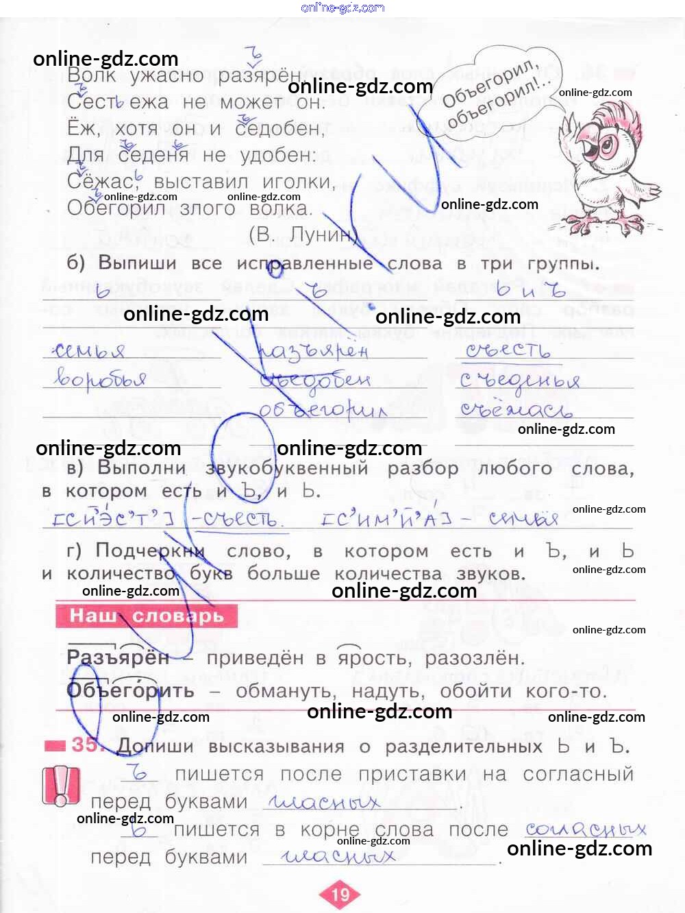 Готовые домашние задания по Русскому языку за 2 класс Рабочая тетрадь Яковлева 2015 - Часть 2. Страницы 19