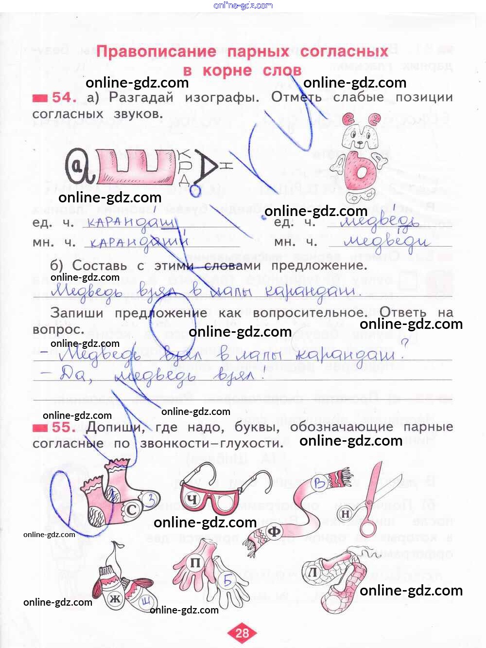 Готовые домашние задания по Русскому языку за 2 класс Рабочая тетрадь Яковлева 2015 - Часть 2. Страницы 28