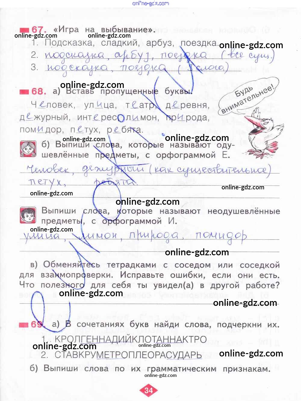Готовые домашние задания по Русскому языку за 2 класс Рабочая тетрадь Яковлева 2015 - Часть 2. Страницы 34