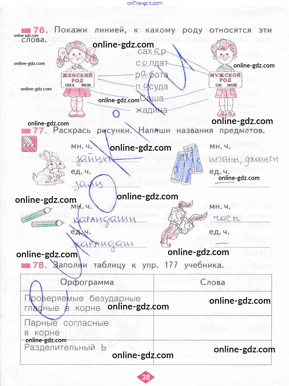 Готовые домашние задания по Русскому языку за 2 класс Рабочая тетрадь Яковлева 2015 - Часть 2. Страницы 38