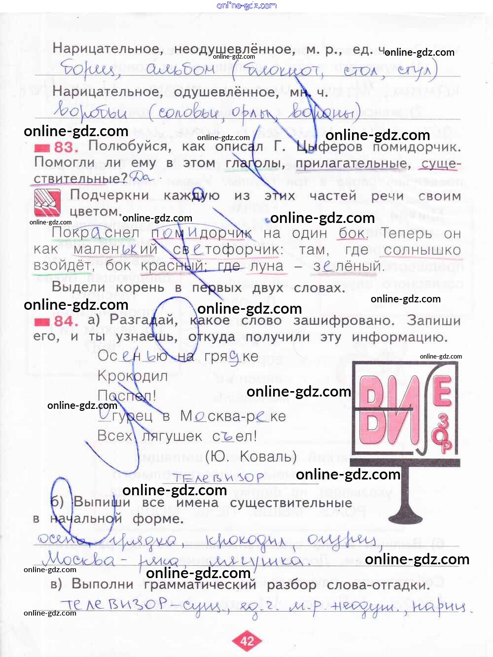Готовые домашние задания по Русскому языку за 2 класс Рабочая тетрадь Яковлева 2015 - Часть 2. Страницы 42