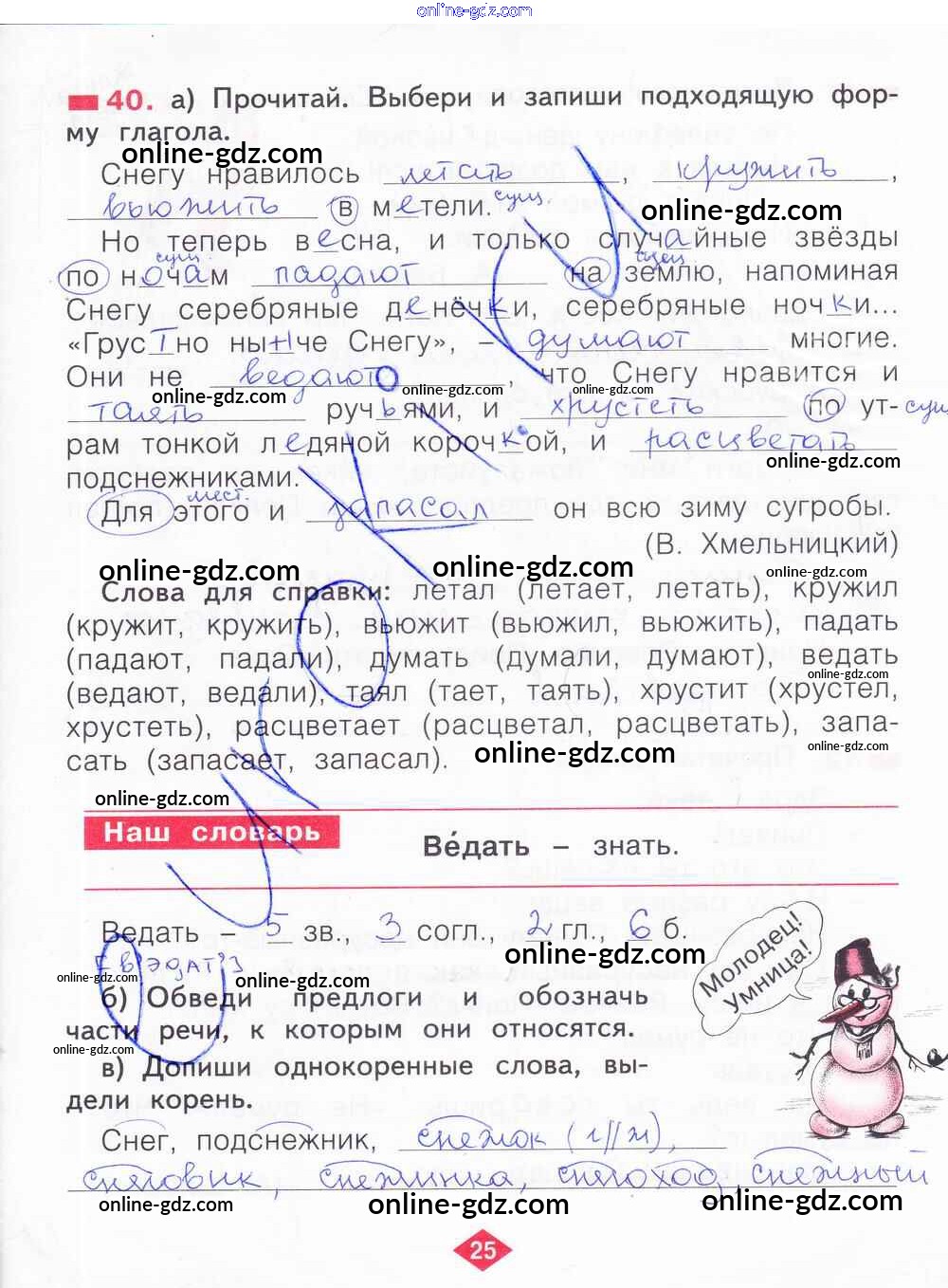 Готовые домашние задания по Русскому языку за 2 класс Рабочая тетрадь Яковлева 2015 - Часть 3. Страницы 25