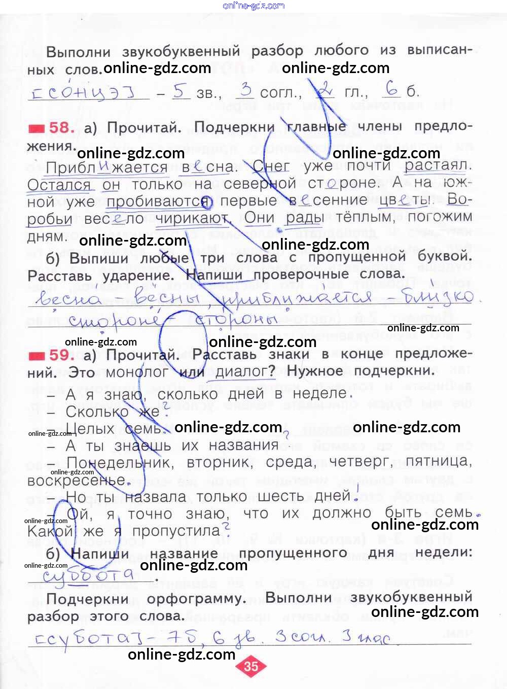 Готовые домашние задания по Русскому языку за 2 класс Рабочая тетрадь Яковлева 2015 - Часть 3. Страницы 35
