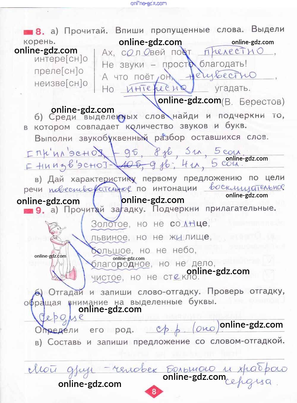 Готовые домашние задания по Русскому языку за 2 класс Рабочая тетрадь Яковлева 2015 - Часть 3. Страницы 8