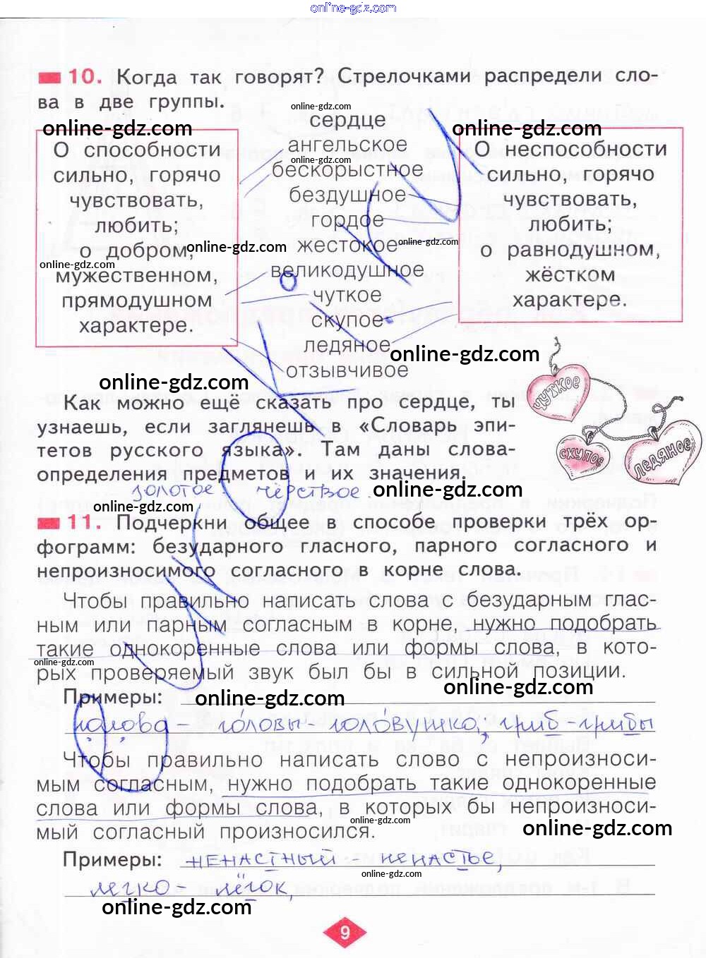 Готовые домашние задания по Русскому языку за 2 класс Рабочая тетрадь Яковлева 2015 - Часть 3. Страницы 9