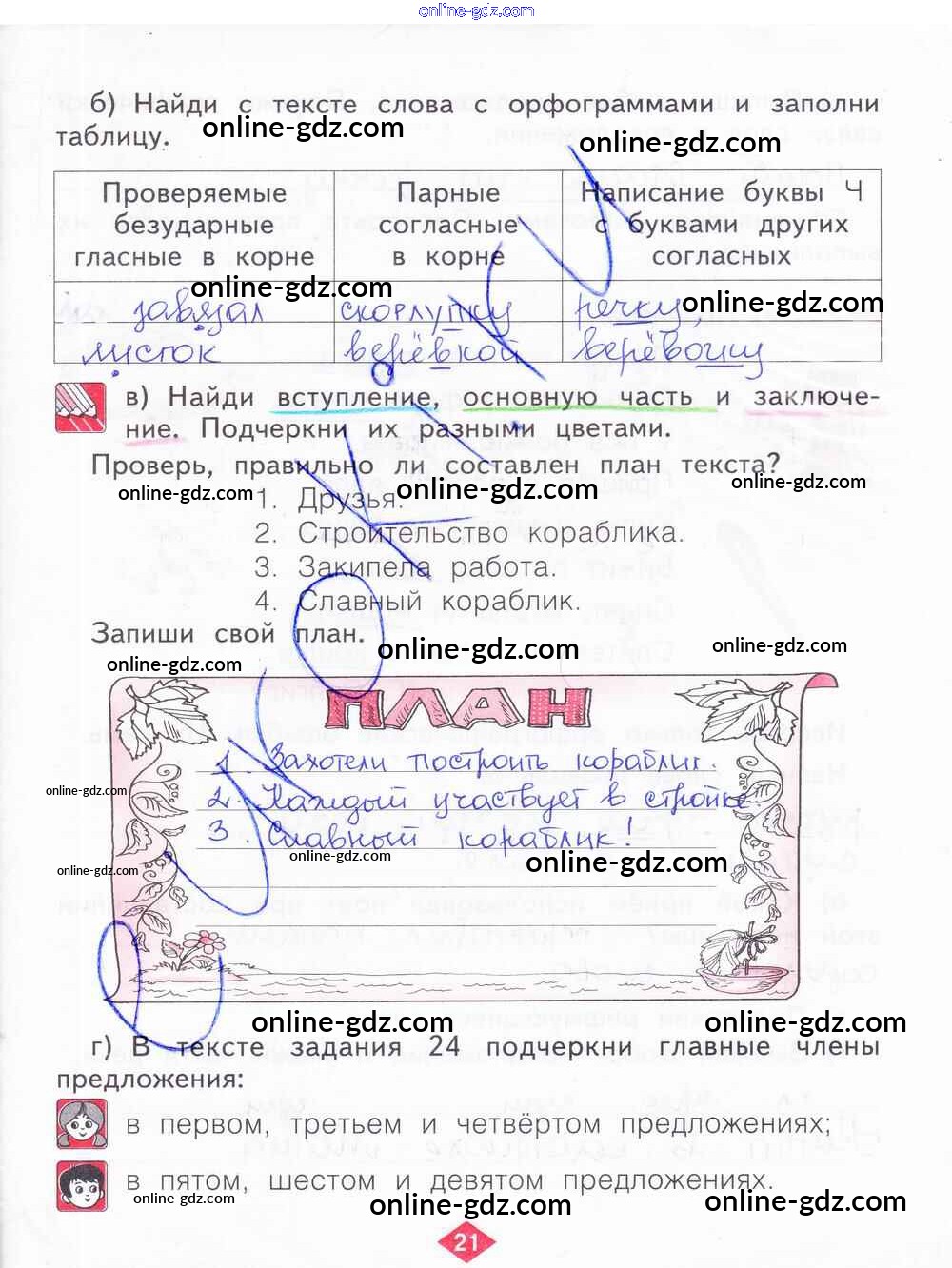 Готовые домашние задания по Русскому языку за 2 класс Рабочая тетрадь Яковлева 2015 - Часть 4. Страницы 21