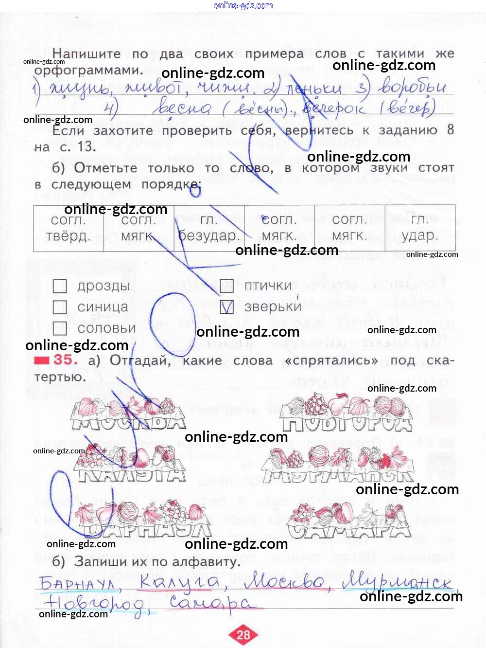 Готовые домашние задания по Русскому языку за 2 класс Рабочая тетрадь Яковлева 2015 - Часть 4. Страницы 28