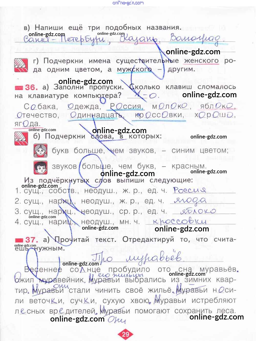 Готовые домашние задания по Русскому языку за 2 класс Рабочая тетрадь Яковлева 2015 - Часть 4. Страницы 29