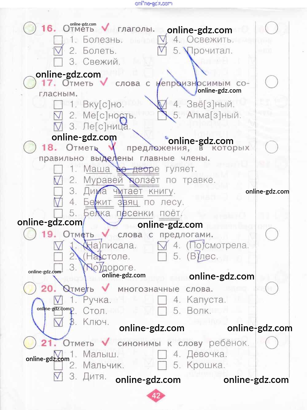 Готовые домашние задания по Русскому языку за 2 класс Рабочая тетрадь Яковлева 2015 - Часть 4. Страницы 42