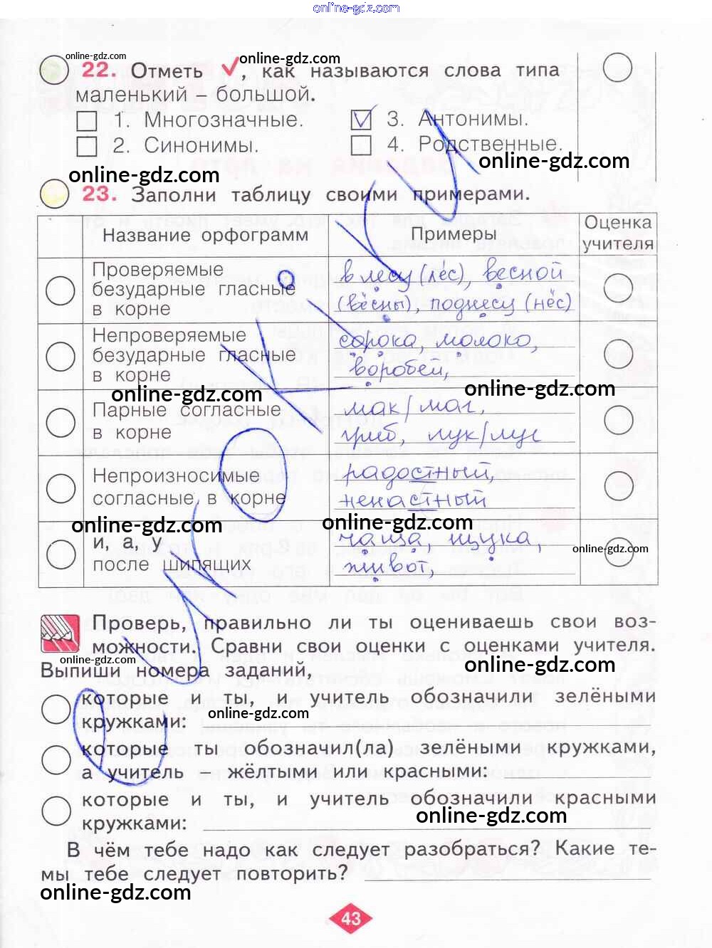 Готовые домашние задания по Русскому языку за 2 класс Рабочая тетрадь Яковлева 2015 - Часть 4. Страницы 43